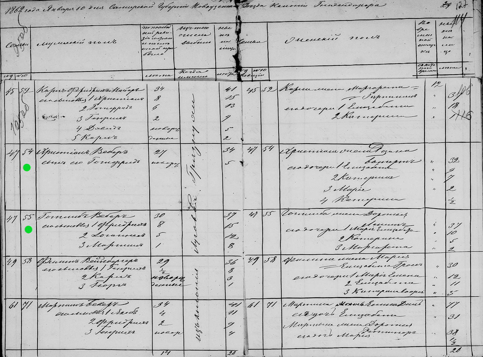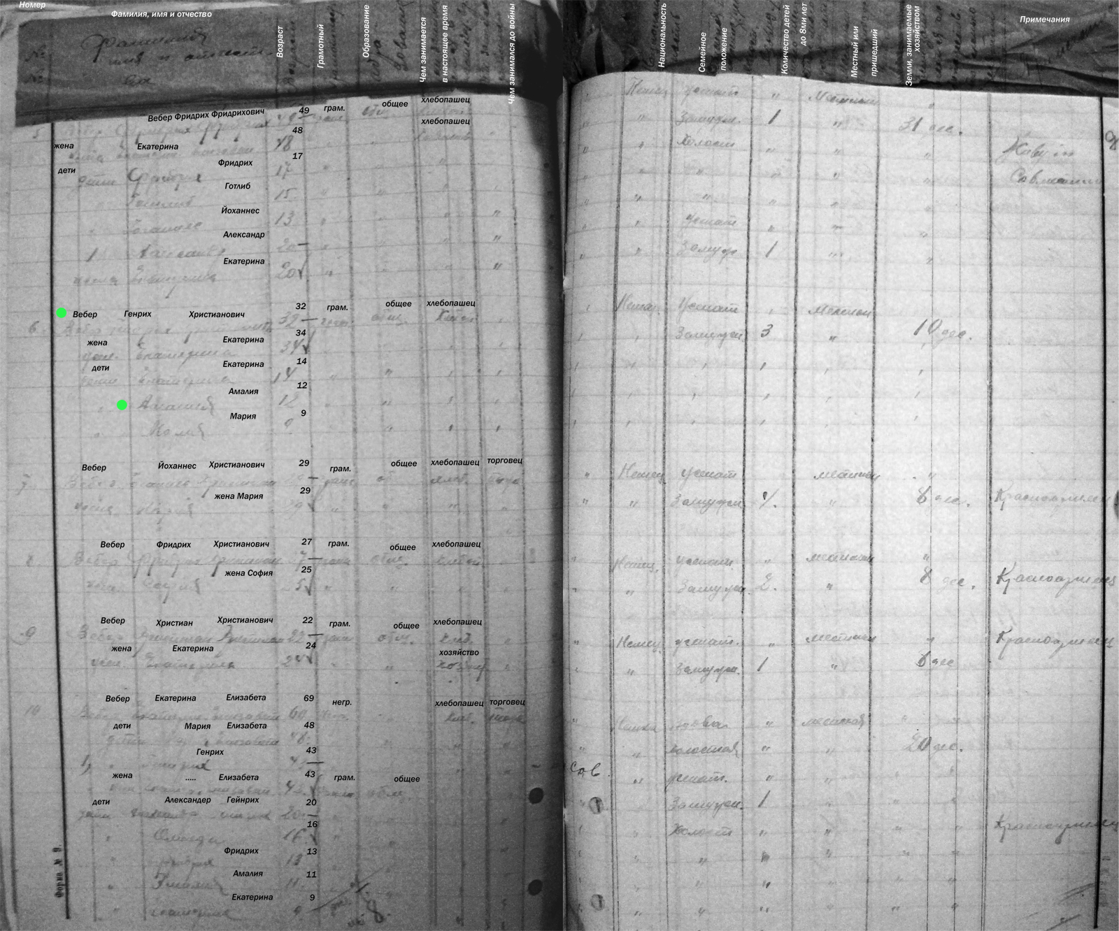 1. Familie von Friedrich Friedrichovich Weber - 49 Jahre alt, Landwirt, vier Kinder, 31 dessiatinas Land, Hof Nr. 5