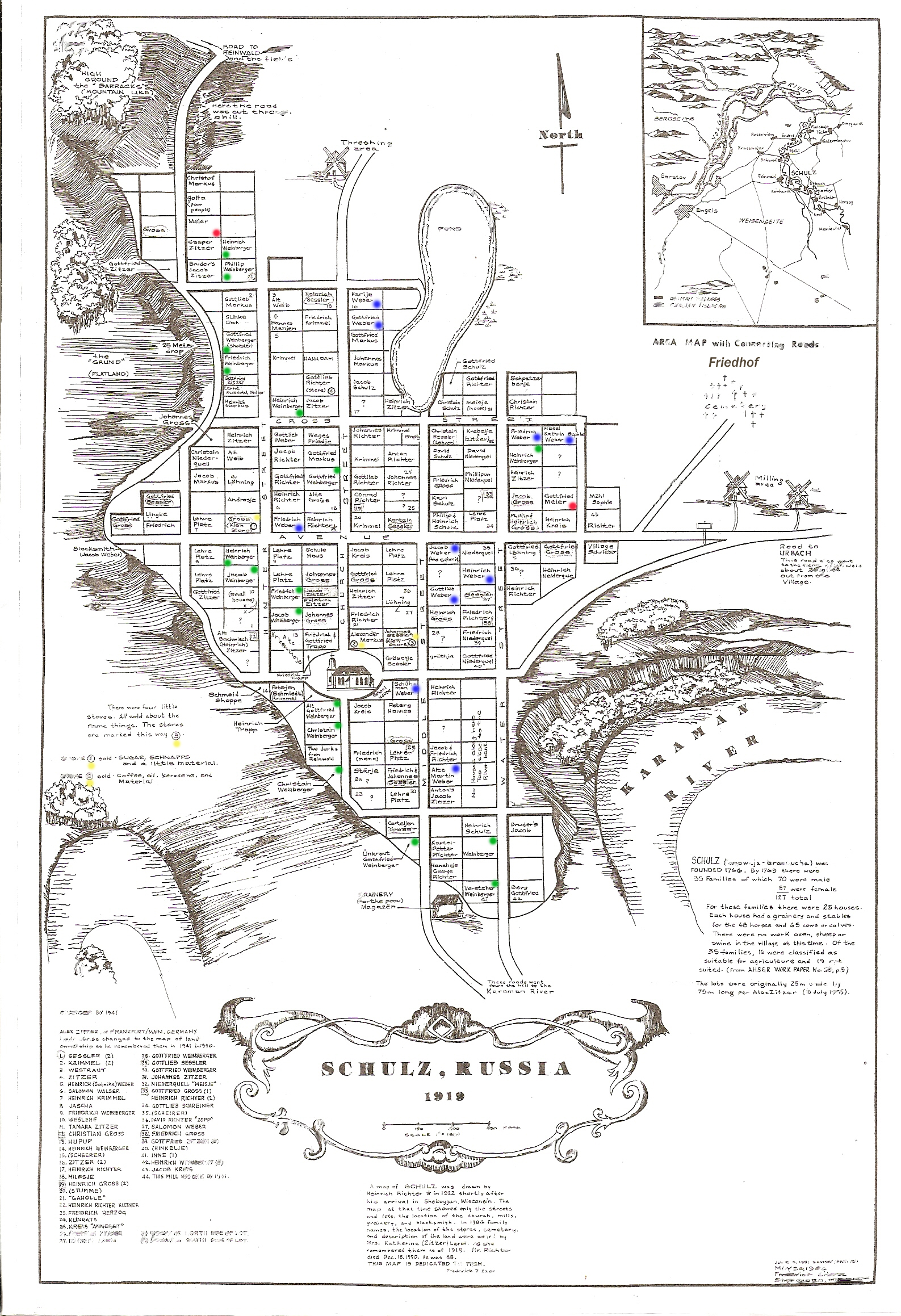 Im Sommer 1767 kam die Familie Weber in der neu gegründeten Kolonie Schultz an, wo sie einen eigenen Hof erhielt. Bei der ersten Volkszählung im Jahr 1767 wurde Jakobs Frau Anna Maria jedoch als Witwe geführt. Wahrscheinlich starb Jacob auf der Reise zwischen St. Petersburg und den Kolonien an der Wolga. Anna Maria führte den Haushalt und zog drei Töchter (Juliana, Anna Maria und Anna Elisabeth) und den jüngsten Sohn Johan Heinrich (Siehe Volkszählung von 1767, siehe Originaldruck Siehe hier) auf. Er war es, der die Nachfolge der Familie Weber in der Kolonie Schultz antrat. 1785 heiratete Johan Heinrich die junge Susanna Lapp aus der benachbarten Kolonie Rheinwald und sie schenkte ihm sechs schöne Kinder. Eines davon hieß Martin (geb. 1795, siehe Volkszählung 1798).
