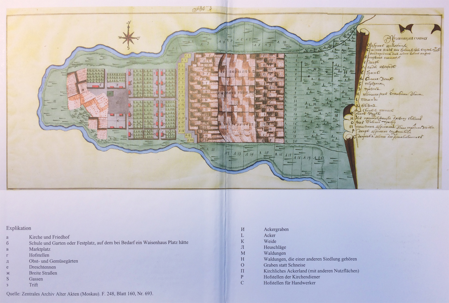 Als unsere Siedler im Herbst 1764 eintrafen, waren die Kolonien noch nicht besiedelbar, und die Menschen wurden für den Winter bei der einheimischen Bevölkerung untergebracht. Ab dem späten Frühjahr 1765 begannen die Kolonien langsam besiedelt zu werden. Die Kolonie Teljauza (Fischer) wurde Mitte Juli "in Betrieb genommen". Georg Friedrich und seine Frau Helena waren die ersten, die in ihren Hof (Nummer 19) einzogen. Drei Tage später erhielten Johan Michael und seine Familie die Schlüssel für das neue Haus. Der Vater zog in die Nummer 5 ein, der Sohn in die Nummer 6. Unsere Vorfahren gehörten zu den ersten deutschen Kolonisten an der Wolga und waren die ersten am linken Ufer.