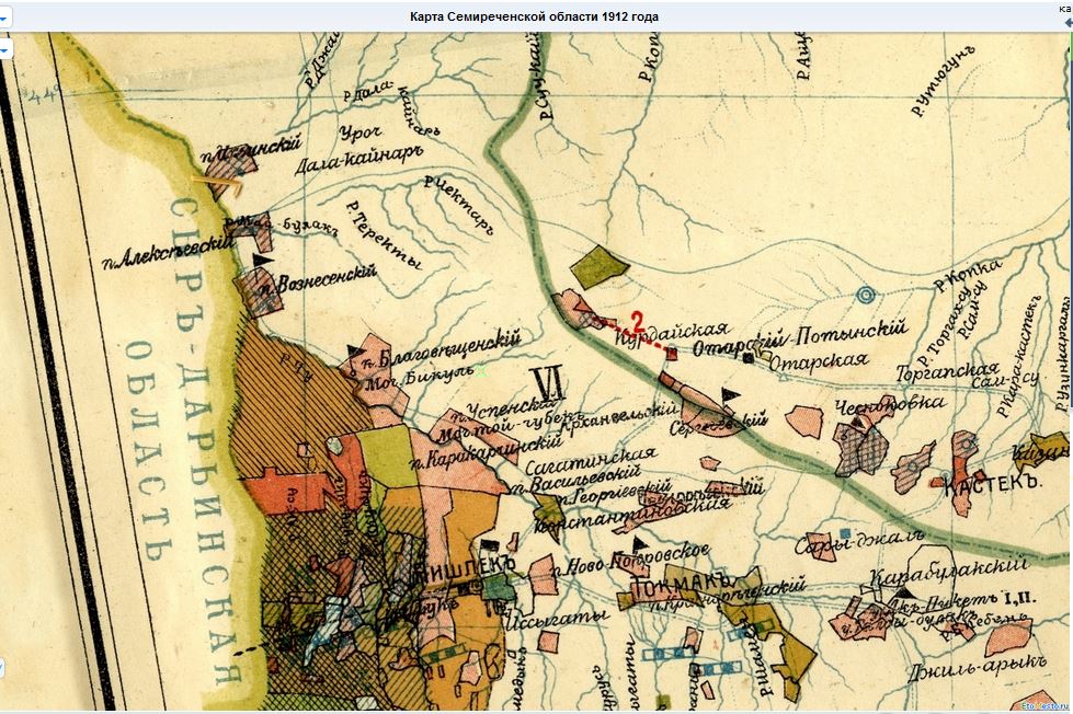 In der zweiten Hälfte des 19. Jahrhunderts übernahm das Russische Reich auf Druck des Kokand-Khanats die Kontrolle über das Tschu-Tal. Bis dahin waren diese Gebiete trotz des fruchtbaren Bodens und des Zugangs zu Wasser kaum oder gar nicht landwirtschaftlich genutzt worden. Natürlich lebten in diesen Gebieten Menschen (Stämme der Älteren Zhuz), aber sie betrieben hauptsächlich Viehzucht und führten einen nomadischen Lebensstil. Die wenigen Aulen im Flussgebiet dienten vor allem als Überwinterungsplätze und Versammlungsorte für den Warenaustausch (Basare). Ende des 19. Jahrhunderts begann das Russische Reich damit, seine neuen südlichen Gebiete allmählich mit russischen Bauern zu besiedeln. Als erstes wurde beschlossen, die Stationen der Postrouten im Süden des Landes anzusiedeln, um die Infrastruktur zu stärken. Sieben Siedlungen wurden im Tal des Flusses Chu errichtet: Georgievka, Uspenovka, Blagoveshchenka, Voznesenovka, Enbekshi, Kokterek, Gulyaevka. In der Nähe der vierten Poststation (flussabwärts), am rechten Flussufer, nicht weit von dem kleinen kasachischen Aul Kemer, wurde das Dorf Voznesenovka (siehe hier - Voznesensky) gegründet. Die zweite Welle der Besiedlung dieser Orte begann im Zuge der Stolypinschen Reformen zu Beginn des 20. Jahrhunderts. 1903 gründeten drei Siedlerfamilien aus dem Dorf Troizkoje im Gebiet Woronesch unterhalb von Wosnesenowka am linken Flussufer ein Dorf, das ihnen zu Ehren "Nowo-Troizkoje" genannt wurde. Drei Jahre später schlossen sich ihnen mehr als hundert Familien aus den zentralen Regionen Russlands an. Die ersten Siedler lebten in Hütten aus Schilfrohr, und davon gab es entlang der Flussufer reichlich. Nachdem sie sich ein wenig eingelebt hatten, begannen die Dorfbewohner, Lehmhäuser zu bauen und sie mit Schilf zu bedecken. Den ersten Hinweis auf Voznesenovka als Siedlung fand ich auf einer Karte aus dem Jahr 1914.